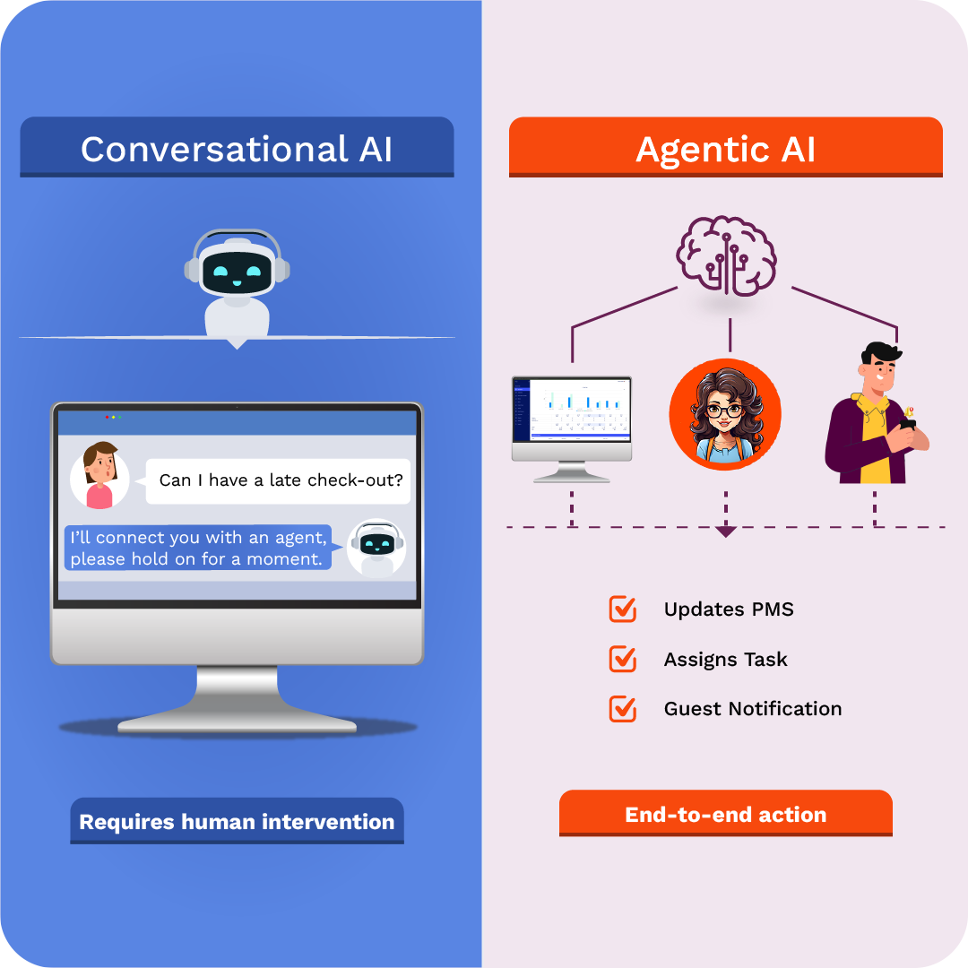 Until recently, AI in hospitality was mostly generative; it could write a nice email or answer a basic FAQ. However, it still required a human to take the actual action. If a guest asked for a late check-out, the AI would say “I'll let the team know,” but a human still had to go into the PMS and change the time.