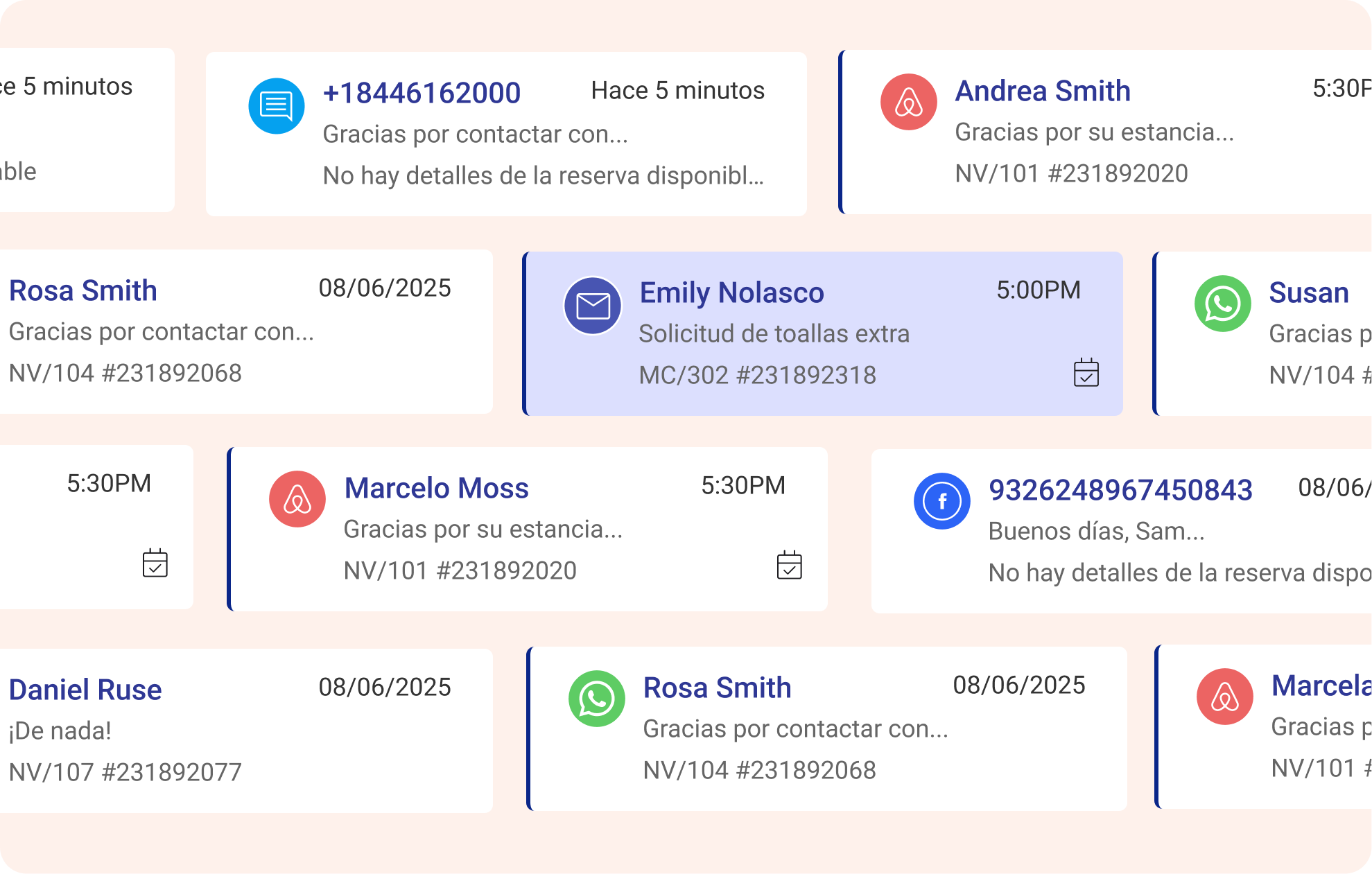 Logra que cada etapa del viaje del huésped sea fluida, mientras la comunicación de tu equipo se mantiene simple y organizada.